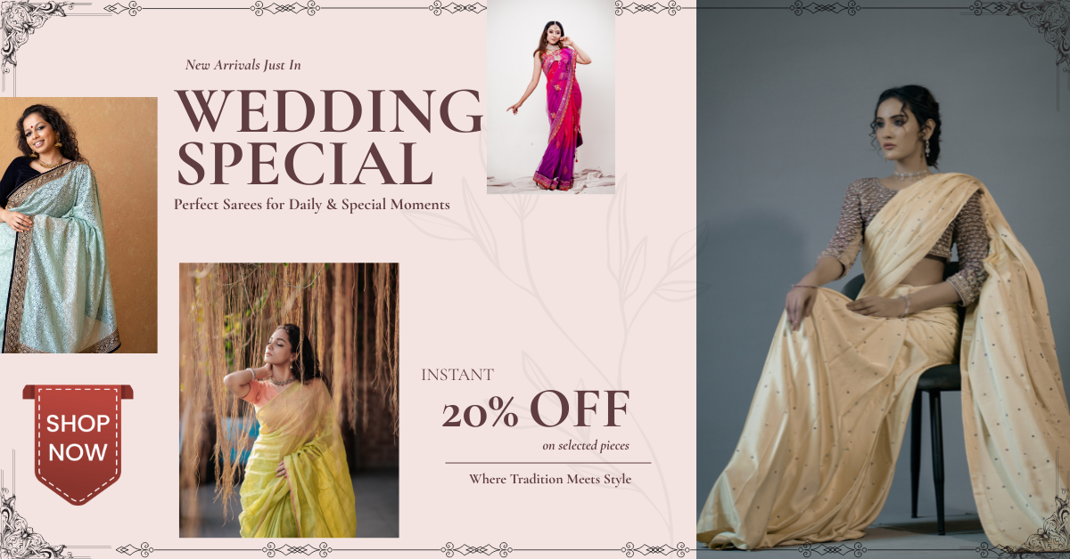We don’t just sell sarees—we curate stories woven in fabric. Every saree is carefully selected for its quality, comfort, and timeless design, blending tradition with modern elegance. From premium craftsmanship to honest pricing and attentive customer support, we focus on delivering a graceful experience you can trust, wear after wear.