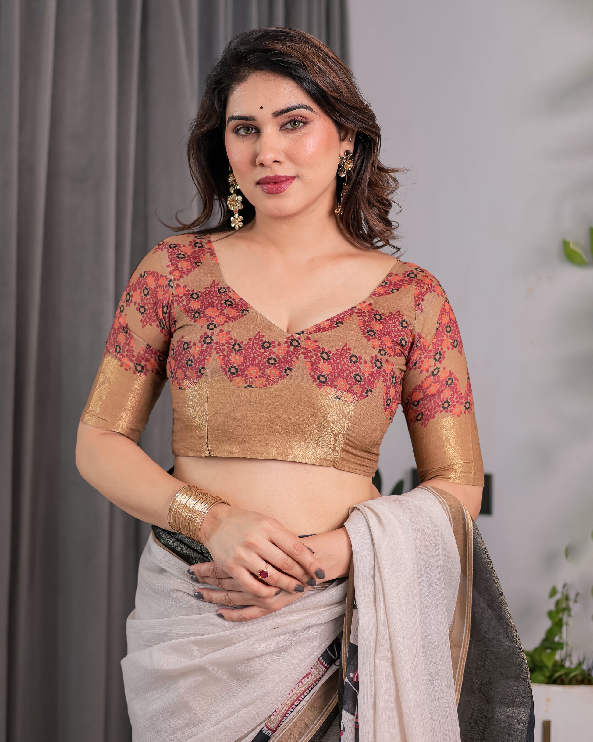 Pair with ethnic gold jewelry or antique oxidized silver earrings for a traditional vibe.